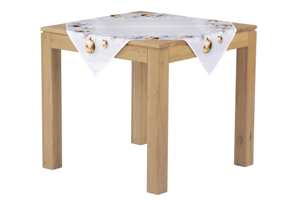 Elegantní bílý ubrus s motivem vánočních ozdob navodí v kuchyni či jídelně příjemnou sváteční atmosféru a pohodu. Ubrus je nejen krásný, ale i praktický bytový doplněk, který poskytne ochranu stolu před poškrábáním a ušpiněním. Rozměr 80×80 cm.