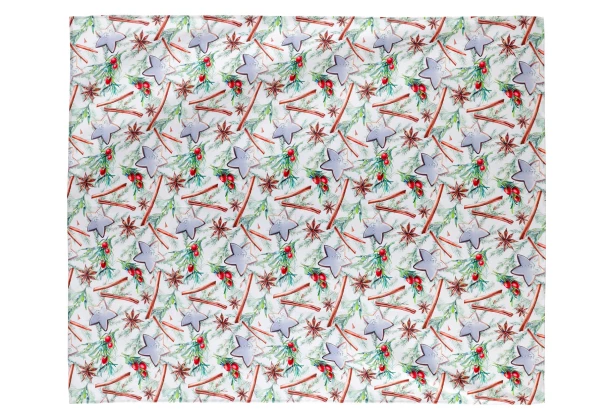 Elegantní bílý ubrus s barevným vánočním motivem perníčků a skořice navodí v kuchyni či jídelně příjemnou sváteční atmosféru a pohodu. Ubrus je nejen krásný, ale i praktický bytový doplněk, který poskytne ochranu stolu před poškrábáním a ušpiněním. Rozměr 160×130 cm.