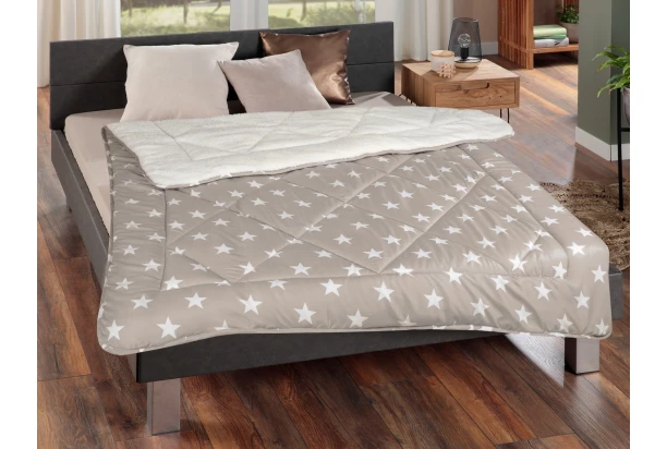 Přikrývka o velikosti 140×200 cm je vyrobena z měkkého a pohodlného materiálu, který Vás udrží v teple a pohodlí po celou zimu. Peřina je oboustranná – potah z mikrovlákna ve stříbrné barvě s hvězdičkami a potah z bílého plyše sherpa. Výplň z polyesteru o hmotnosti 700 g poskytuje dostatek tepla i pro ty nejchladnější noci.