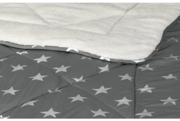 Oboustranná přikrývka o rozměrech 140×200 cm nabízí dokonalý komfort a příjemné teplo pro chladné zimní noci. Jedna strana je z jemného mikrovlákna s moderním hvězdným motivem, který dodá vašemu interiéru stylový nádech, zatímco druhá strana z měkkého plyše Sherpa poskytuje příjemné zahřátí a útulnost. Barva antracitová.
