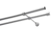 Dvojitá záclonová souprava obsahuje dvě kovové tyče a válcové koncovky v provedení stříbrný satén. Délka 160 cm, průměr 19 mm.