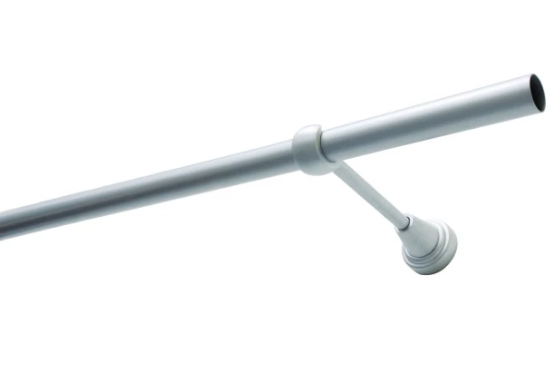 Jednoduchá záclonová souprava obsahuje jednu kovovou tyč a válcové koncovky v provedení stříbrný satén. Délka 160 cm, průměr 19 mm.