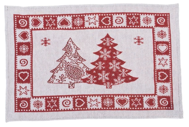 Prostírání o rozměru 48×33 cm s motivem stromečků přidá do Vašeho domova dojem zimního kouzla a radosti. Prostírání v červeném provedení perfektně doladí Váš vánoční stůl.