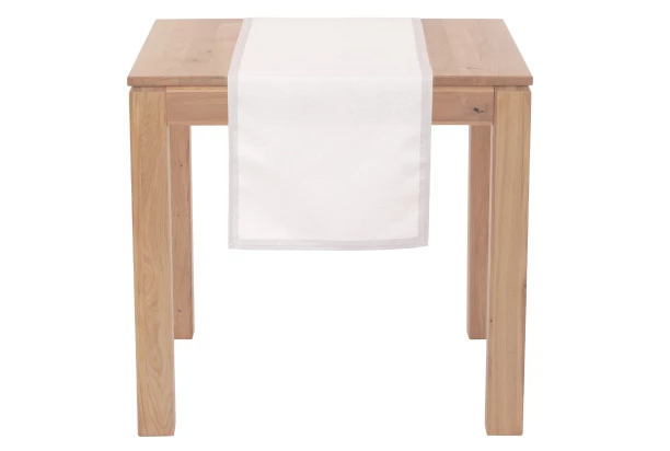 Bílý běhoun na stůl s vetkanými stříbrnými nitkami a stříbrným lemem vykouzlí sváteční atmosféru a zimní pohodu nejen u štědrovečerní večeře. Běhoun na rozdíl od ubrusu zakryje jen prostřední část stolové desky, ale i tak poskytne částečnou ochranu stolu před poškrábáním a ušpiněním. Rozměr 150×40 cm.