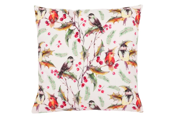 Dekorační povlak na polštář o rozměru 45×45 cm je ideální pro standardní polštáře. Povlak je vyroben z polyesteru, který má vzhled sametu, a proto je jeho povrch hebký na dotek. Zimní vánoční motiv ptáčků vnese do každého interiéru sváteční atmosféru a veselou náladu.