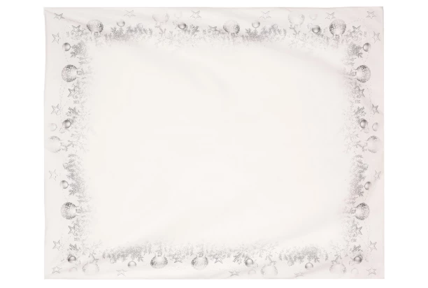 Bílý ubrus na stůl s motivem vánočních koulí navodí v kuchyni či jídelně příjemnou sváteční atmosféru a pohodu. Ubrus je nejen krásný, ale i praktický bytový doplněk, který poskytne ochranu stolu před poškrábáním a ušpiněním. Rozměr 130×160 cm.