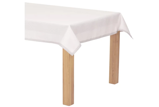 Bílý ubrus na stůl s vetkanými stříbrnými nitkami a stříbrným lemem navodí v kuchyni či jídelně příjemnou sváteční atmosféru a pohodu. Ubrus je nejen krásný, ale i praktický bytový doplněk, který poskytne ochranu stolu před poškrábáním a ušpiněním. Rozměr 130×160 cm.