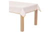 Ubrus na stůl v krémové barvě s vetkanými zlatými nitkami a zlatým lemem navodí v kuchyni či jídelně příjemnou sváteční atmosféru a pohodu. Ubrus je nejen krásný, ale i praktický bytový doplněk, který poskytne ochranu stolu před poškrábáním a ušpiněním. Rozměr 130×220 cm.