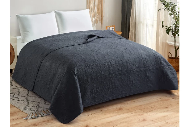 Přehoz přes postel 220×240 cm je nejen stylový, ale i praktický doplněk do každé domácnosti. Přehoz v černé barvě dodá ložnici nádech elegance a skvěle doplní jakýkoliv interiér. Přehoz je zdoben jemným, ale bohatým reliéfním ornamentálním vzorem, který dodává látce hloubku a luxusní texturu. Přehoz je ideální nejen na postel, ale také jako dekorativní doplněk na pohovku.