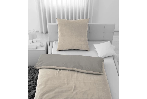 Luxusní oboustranné ložní povlečení v neutrální kombinaci krémové a taupe barvy promění každou noc v nezapomenutelný zážitek. Toto flanelové povlečení z polyesterového vlákna imituje kašmír, který je mimořádně měkký a hebký na dotek. Díky vlastnostem „cashmere touch“ vás spolehlivě udrží v teple a pohodlí po celou zimu. Rozměry povlaku na přikrývku jsou 140×200 cm.