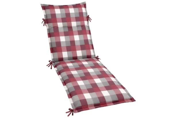 Pohodlný polštář na lehátko v elegantní vínovo-šedé barvě s kostkovaným vzorem zvýší komfort sezení a ležení na zahradě. Rozměr 60×190 cm.