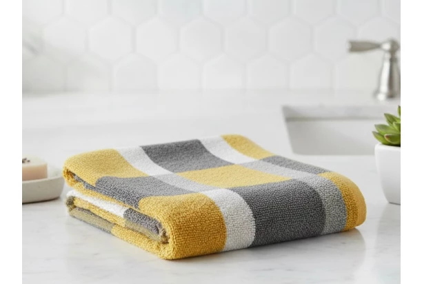 Froté osuška s moderním kostkovaným vzorem ve žluté barvě bude vaši pokožku dokonale hýčkat každý den. Rozměr 70×140 cm.