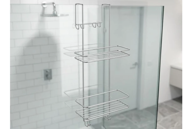 Závěsný sprchový regál je ideálním řešením pro každého, kdo hledá pořádek v koupelně bez nutnosti vrtání do obkladů. Dvoupatrová sprchová police nabízí dostatek místa pro veškerou kosmetiku od šamponů až po mýdla. Praktické háčky umožňují pohodlné zavěšení ručníků i žínek. Speciální povrchová úprava chrometherm zajišťuje antistatické vlastnosti, vysokou odolnost proti korozi a zároveň usnadňuje údržbu.