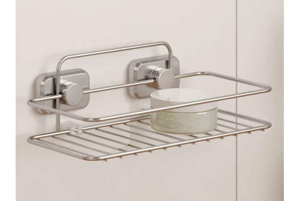 Odkládací polička je ideálním řešením pro každého, kdo hledá praktický úložný prostor v koupelně. Speciální povrchová úprava chrometherm zajišťuje antistatické vlastnosti, vysokou odolnost proti korozi a zároveň usnadňuje údržbu. Díky inovativnímu systému VacuumFix polici připevníte během okamžiku na jakýkoli hladký, neporézní povrch bez jediného otvoru ve zdi.