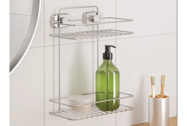 Praktický závěsný regál k umyvadlu, do sprchy nebo vany je ideálním řešením pro přehlednou organizaci v koupelně. Díky kompaktním rozměrům a dvoupatrovému provedení police šetří místo a zároveň udržuje vše potřebné na dosah ruky. Speciální povrchová úprava chrometherm zajišťuje antistatické vlastnosti, vysokou odolnost proti korozi a zároveň usnadňuje údržbu.