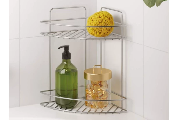 Praktická volně stojící rohová polička k umyvadlu, na vanu nebo třeba k dřezu, je ideálním řešením pro přehlednou organizaci v koupelně i kuchyni. Díky kompaktním rozměrům a dvoupatrovému provedení šetří místo a zároveň udržuje vše potřebné na dosah ruky. Speciální povrchová úprava chrometherm zajišťuje antistatické vlastnosti, vysokou odolnost proti korozi a zároveň usnadňuje údržbu. Odkládací polici lze volně postavit či zavěsit na hladký povrch.