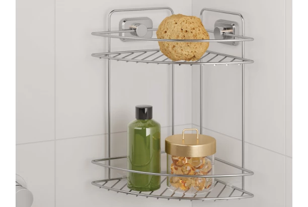 Praktický závěsný rohový regál k umyvadlu, do sprchy nebo vany je ideálním řešením pro přehlednou organizaci v koupelně. Díky kompaktním rozměrům a dvoupatrovému provedení police šetří místo a zároveň udržuje vše potřebné na dosah ruky. Speciální povrchová úprava chrometherm zajišťuje antistatické vlastnosti, vysokou odolnost proti korozi a zároveň usnadňuje údržbu.