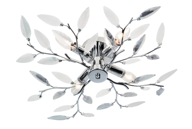 Krásné stropní osvětlení imitující rostlinu se skleněnými lístky.