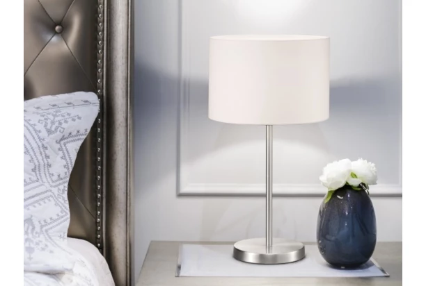 Moderní stolní lampa s textilním stínidlem v bílé barvě vytvoří útulnou atmosféru v každé místnosti. Lampičku je ideální umístit na noční stolek nebo komodu, kde poskytne to nejlepší osvětlení. Výška 32 cm.
