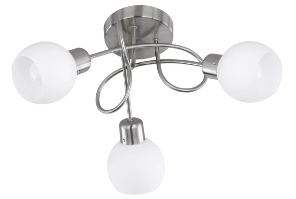 Stropní osvětlení s úspornou LED technologií vytváří příjemné světelné akcenty a dodává obytnému prostoru útulnou atmosféru. Osvětlení zaujme svým jednoduchým designem v provedení matný nikl, který perfektně ladí s opálově bílými skleněnými stínidly. Varianta se 3 svítidly.