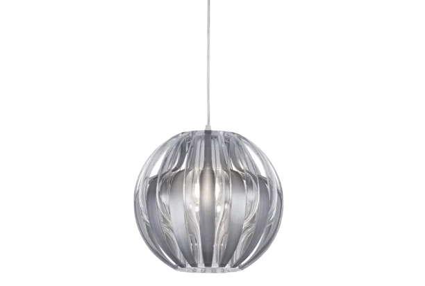 Lustr s elegantním designem vytváří zajímavý efekt v každé místnosti. Plastové stínidlo o průměru 30 cm ve stříbrno-čiré barvě dodává závěsné lampě moderní vzhled, který lze snadno začlenit do mnoha stylů zařízení.