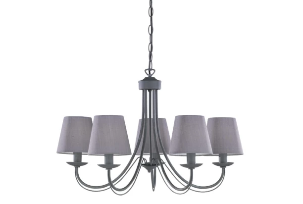 Elegantní lustr z kovu v barvě betonu v kombinaci s šedými látkovými stínidly lze dobře začlenit do klasicky i moderně zařízeného interiéru. Závěsná stropní lampa s 5 svítidly dodá Vašemu obývacímu pokoji, ložnici nebo kuchyni zvláštní šmrnc. Průměr 66 cm.