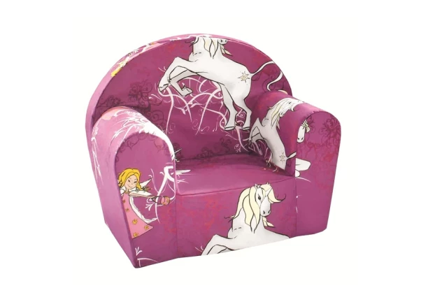 Roztomilé dětské křesílko z měkké polyuretanové pěny se dětem zalíbí. Potah s motivem poníka a víly.