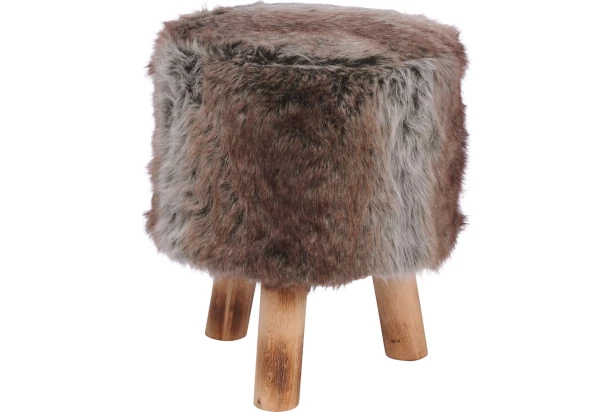 Krásná a stylová stolička je potažena kožešinou v hnědé barvě a stojí na 3 dřevěných nohách. Malý taburet je vhodný na sezení, ale také jej lze využít jako podnožku či odkládací stolek. Stolička o průměru 32 cm doladí Váš domov k dokonalosti.