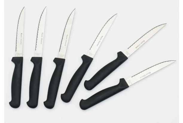 6-dílná sada ocelových nožů je vhodná na steaky. S černou rukojetí.