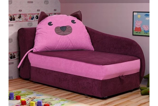 Udělejte radost svým ratolestem! Veselá válenda do dětského pokoje s motivem kočky. V barevné kombinaci růžová/fialová. S funkcí rozkladu na lůžko.