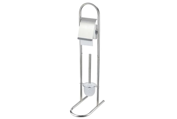 WC stojan na toaletní papír se záchodovou štětkou má stabilní konstrukci kovu v chromově lesklém provedení.