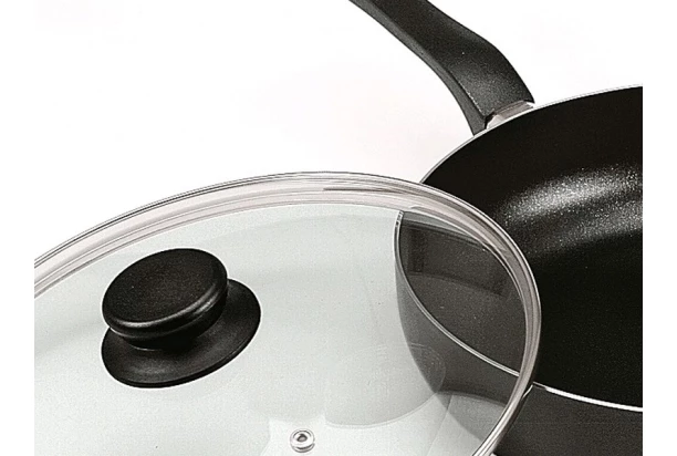 Velká a extra vysoká pánev s nepřilnavým povrchem o průměru 28 cm a skleněnou poklicí. Ergonomicky tvarovaná rukojeť pro snadné zvedání.