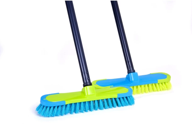 Smeták na podlahu s plastovou násadou a kovovou tyčí o výšce 120 cm v modro-zeleném provedení. Má ochranné postranní prvky, které tlumí náraz. Tvrdé syntetické štětiny.