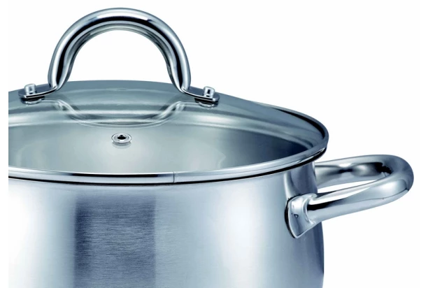 Elegantní kuchyňský hrnec na vaření s poklicí a o vnitřním objemu 3,6 litru. Vyroben z ušlechtilé nerezové oceli s termo-sendvičovým dnem pro efektivní a zároveň rovnoměrné rozvádění tepla. Lze používat na všech typech sporáků, včetně indukčních varných desek.