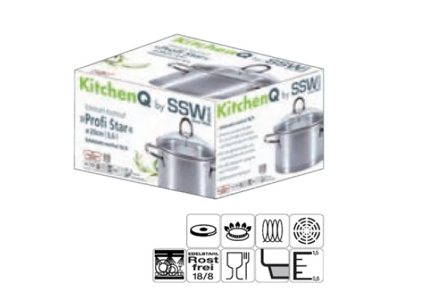 Kuchyňský nerezový hrnec s poklicí ze série Profi Star o vnitřním objemu 1,9 litru. Extra silné termo-sendvičové dno zajišťuje efektivní absorbci tepla a zároveň jeho rovnoměrné rozvádění. Oceníte i široké nýtované rukojeti. Lze použít na všech typech sporáků, včetně indukčních varných desek.