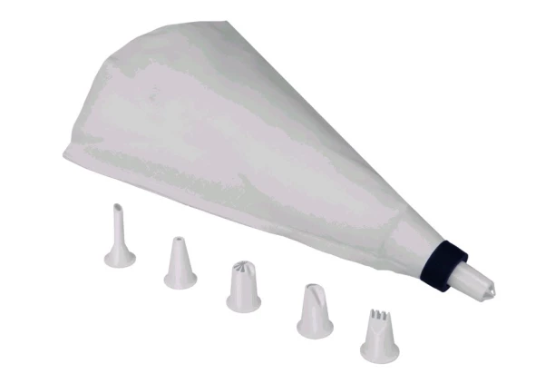 Cukrářský set na zdobení obsahuje látkový sáček a 6 plastových nástavců. Ideální pomocmník pro tradiční výrobu dortů a zákusků.