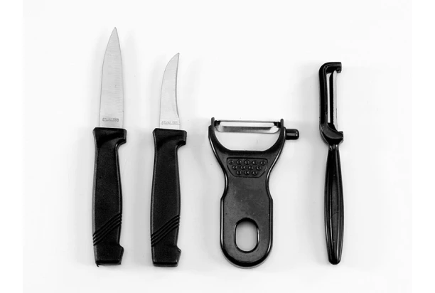 - kuchyňská sada obsahuje: 2 x škrabka na brambory, 1 x vykrajovací nůž, 1 x nůž na zeleninu