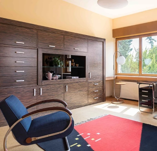 Jestli má někdo recept na krásu a dlouhověkost, pak je to tahle funkcionalistická kráska, která za pár let oslaví stovku. A přitom se zdá, jako by poslední řemeslníci odešli teprve včera. Jednu z nejimpozantnějších (a současně nejdražších) rezidencí navrhli pro investora Josefa Volmana mladí avantgardní architekti Karel Janů a Jiří Štursa. Je pikantní, že jeden z nejbohatších podnikatelů a mecenášů své doby si pro návrh vysněné vily vybral duo levicových intelektuálů, kteří se na začátku spolupráce rozhodli, že mu „ukážou“, a přinesli návrh jednoduché kostky, tedy nevídaně minimalistické řešení. Jaké asi bylo jejich překvapení, když pan Volman souhlasil… Projekt se postupně vyvíjel, ale je zřejmé, že všichni zúčastnění projevili velkou odvahu a fantazii.