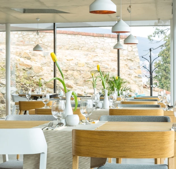 „Dialog starého s novým ve vzácném historickém prostředí“, tak o projektu Castelum Café přímo v areálu Nitranského hradu píší renomované oborové časopisy nejen na Slovensku, zatímco kolegové uznale pokyvují hlavou. Tým architekta Martina Dulíka měl za úkol vytvořit zázemí pro návštěvníky hradu. Jednoduchá stavba zapuštěná do svahu má prostornou střešní terasu a díky prosklené fasádě nabízí opravdu dechberoucí výhled na město i část hradeb. Užijte si ladný skok z hluboké historie rovnou do 21. století.