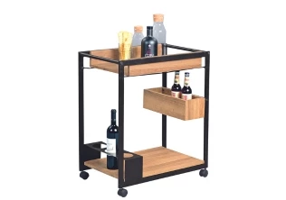 Servírovací stolek s chytrými přihrádkami na lahve nahradí bar a oslní kamarády, až přijdou na fotbal nebo partičku karet. Kombinace dřeva a tmavého kovu je moderní a nadčasová, díky kolečkům bude stolek vždycky na správném místě.