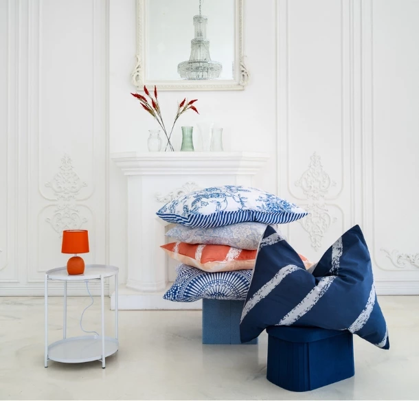 Designérka Jana Vařechová Holoubková prošla naši prodejnu v pražských Štěrboholích a našla nábytek, doplňky i dekorace v mnoha tónech modré: od nejtemnější barvy hluboké noci nebo oceánu přes odstíny letní oblohy až po světlounkou modř pomněnek. „Kombinováním různých tónů modré, různých motivů, vzorů a struktur, materiálů a dalších doplňkových barev můžeme vytvořit interiér v libovolném stylu, přesně podle vlastního vkusu a možností našeho domova,“ říká Jana.