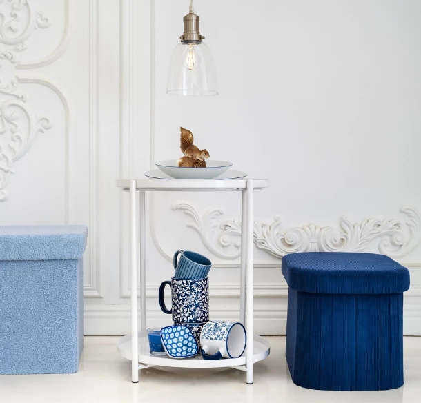 Pokud k modré zatím opatrně hledáte cestu, začněte po malých krůčcích. Modré hrnky a další doplňky do kuchyně vám budou dělat radost celý rok a praktický taburet s úložným prostorem může být prvním akordem vaší vlastní rapsodie v modrém.