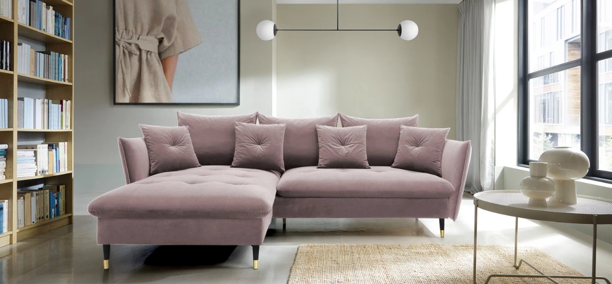 Možná dáte před návštěvou kina přednost variantě komorního představení jen ve dvou. Pohodlné polštáře a příjemné čalounění, které na dotek i vizuálně připomíná samet, štíhlé černozlaté nožky, úložný prostor a možnost rozložit sedačku na spaní, to je ideální kombinace pro někoho, kdo hledá multifunkční a krásný kus nábytku. Elegantní pohovka Glam na štíhlých nožkách bude díky nadčasovému designu vypadat výborně v moderním, rustikálním i eklektickém obývacím pokoji.