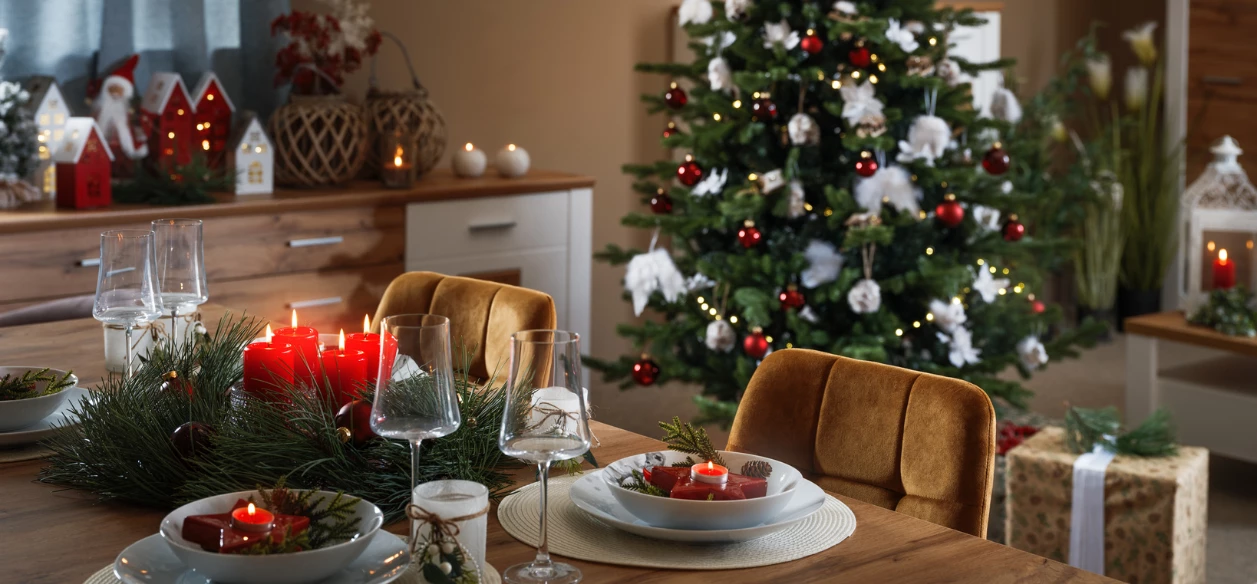 Mnohým z nás se při slově Vánoce vybaví klasická kombinace zelené a červené. Je to tradiční kombinace spojující symboly svátečního času, zimy a přírody. Zelená je symbolem života a obnovy, které nám jmelí, větvičky jehličnanů a cesmína připomínají i v době, kdy příroda odpočívá. Živé přírodní dekorace, jako jsou věnce, vánoční stromek nebo větve, vnášejí do interiéru vůni, kterou ovšem hravě nahradí aromatické svíčky. Umělé dekorace už dávno nelze považovat za nedostatečné a mají tu výhodu, že vánoční nálada může doma panovat dlouhé týdny.