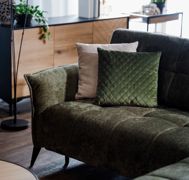 Velmi důležitým faktorem při zařizování otevřeného prostoru je výběr barev. V případě konkrétního interiéru v prodejně ve Štěrboholích designérka zvolila uklidňující odstín mechově zelené, který je momentálně velmi oblíbený. „Mechově zelená dodává prostoru eleganci a zároveň klid. Tato barva má pozitivní vliv na psychiku a zklidňuje, což je v otevřeném prostoru velmi důležité. Lidé zde tráví čas nejen při relaxaci, ale i při jídle nebo spaní, a proto je nezbytné, aby celý prostor působil harmonicky a vyváženě,“ vysvětluje Andrea Čučka. Přírodní barvy vnášejí do interiéru přirozený prvek a příjemnou atmosféru a snadno se kombinují s dalšími přírodními materiály, jako je dřevo nebo kámen. Pokud použijete různé tóny jedné barvy na větších kusech nábytku, na stěnách i drobnějších doplňcích, bude celý prostor působit jednotně. A to je v případě otevřeného prostoru klíčové pro dosažení uklidňujícího, nadčasového a útulného stylu.