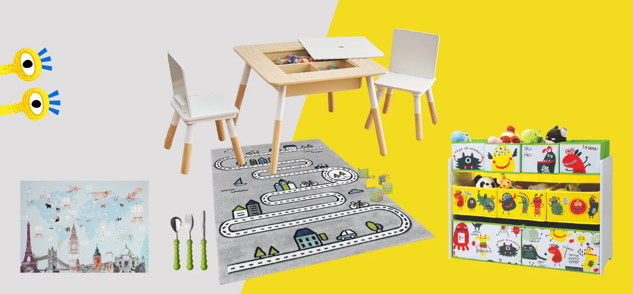 Set dvou židliček a stolku Play ukrývá pod deskou několik přihrádek na kostky, drobné hračky nebo kreslicí potřeby.