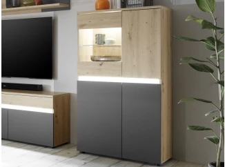 Vysoká komoda s prosklením Bergen, bílá/dub artisan
