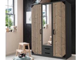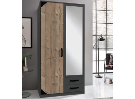 Šatní skříň se zrcadlem Bochum, 90 cm, grafit/jedle