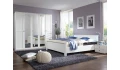 Kouzelnou atmosféru venkovského stylu přináší kolekce ložnice Chalet v bílém provedení. Široké reliéfy předních ploch a kovové úchytky s decentním efektem patiny jsou elegantním stylovým prvkem. K manželské posteli pasuje set nočních stolků i velká šatní skříň se zrcadly uprostřed. Doplňková komoda se zásuvkami rozšíří ložnici o další úložné prostory.