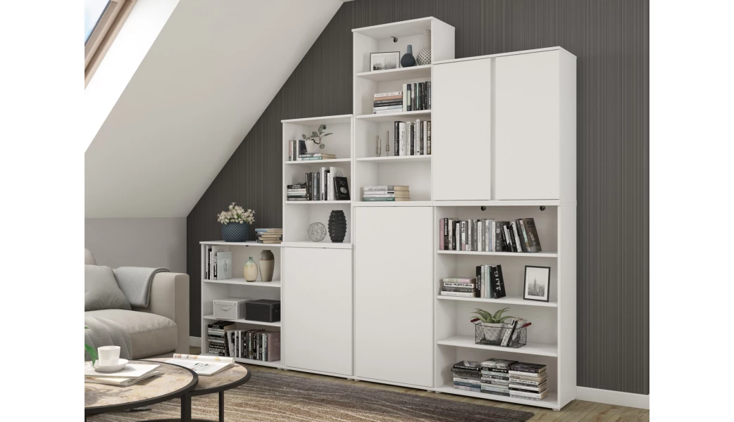 Sestava nábytku Charles – nábytek v jednoduše moderním stylu pasuje do každého bytu. Různě velké regály a skřínky můžete mezi sebou libovolně kombinovat anebo na sebe stavět. Zařídíte si tak snadno a prakticky téměř jakýkoliv kout vašeho bytu. Nábytek je vhodný do obýváku, domácí pracovny nebo i dětského pokoje.